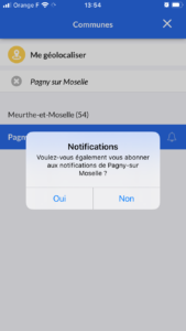 6 : L’application me propose l’envoi de notifications, je réponds oui si je veux suivre plus facilement le fil d’actualité de ma commune.