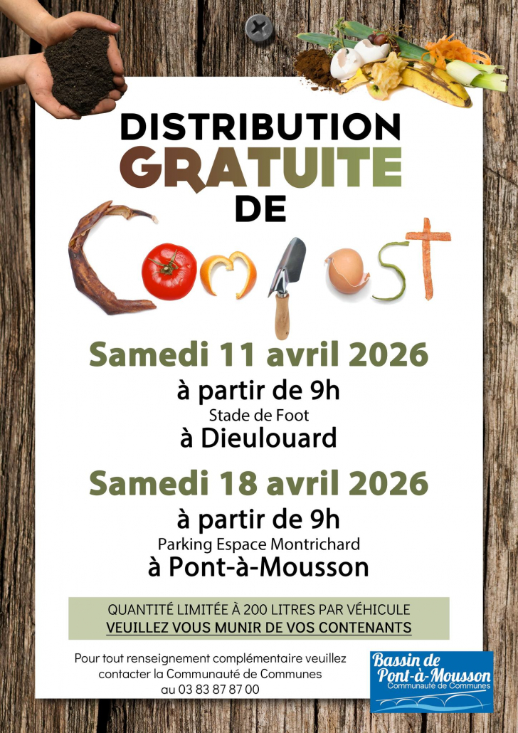 La Communauté de Communes du Bassin de Pont-à-Mousson organise deux journées de distribution gratuite de compost à destination des habitants du territoire. Ce compost, issu du traitement des déchets verts, est idéal pour enrichir naturellement les sols et favoriser la croissance des plantations.