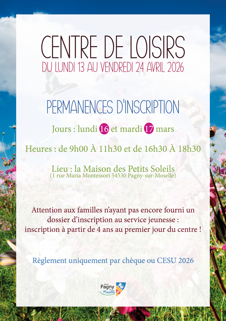 Afin d’inscrire votre enfant, des permanences d’inscription seront organisées :