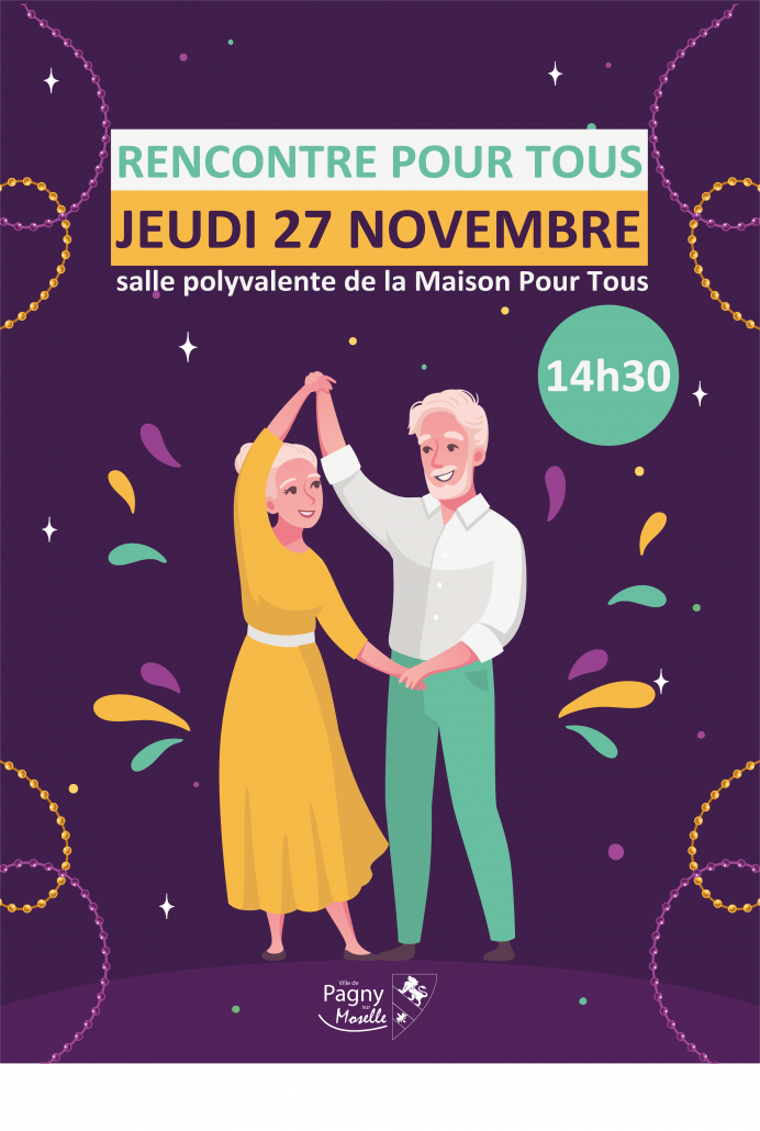 La Rencontre Pour Tous aura lieu le jeudi 27 novembre à partir de 14h30, à la salle polyvalente de la Maison Pour Tous, au 1er étage.