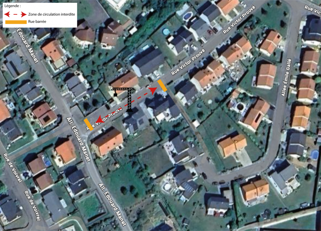 Dans le cadre de travaux d’extension d’une maison à ossature bois située rue Victor Prouvé, une opération de déchargement des éléments de construction nécessitera l’installation d’une grue autoportée ainsi que d’un véhicule de livraison.